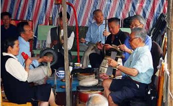 圍鼓 打鎦子 打排鼓 此外,木葉、土號、樹皮號、二胡等也是民間常見樂器。 |