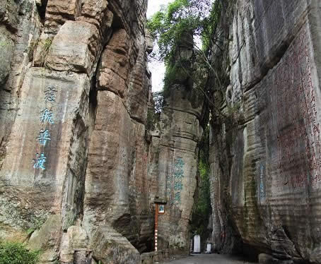 清嘉慶年間辟有洗心池!安欢T”如斧斫神劈,為石林天成,石林壁上鐫滿歷代文人的詩詠。這里古柏參天,藤蘿倒掛,環(huán)境幽美。有壁石如書的萬卷書者,有嵐霧束腰的七級(jí)青石培英塔。凝神盤坐的南海觀音是一塊天然造型的巨石,惟妙惟肖。觀音巖周圍,環(huán)繞著具有明清風(fēng)格的地藏庵、嵩山堂、水府閣等建筑物,布局靈巧緊湊,主題鮮明,因勢(shì)造景。景點(diǎn)間曲徑迂回,迷趣深?yuàn)W,稱八陣圖。景區(qū)內(nèi)的河灘上有兩處溫泉,氤氳縈繞,水溫適宜(41℃),水質(zhì)良好,能治療多種疾病?h城人民經(jīng)“不二門”前往溫泉就浴者絡(luò)繹不絕,現(xiàn)又增建了石牌坊和民俗博物館。
