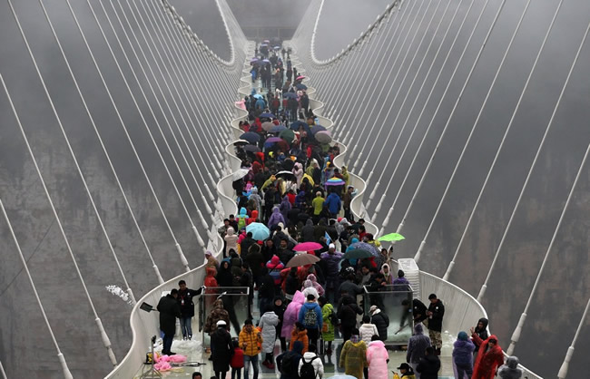 建造于張家界大峽谷絕壁間的玻璃橋,主跨430米,距離谷底相對高度300米,從立項開始即受到世界高度關(guān)注,建成后更是成為世界首座斜拉式高山峽谷玻璃橋,并創(chuàng)下世界最高、跨度最長等十項世界之最,堪稱世界橋梁建造史上之典范。目前,玻璃橋正準備建設(shè)世界最高蹦極臺,高度差為300余米,蹦極高度260米以及長度為亞洲之最的巨型秋千。