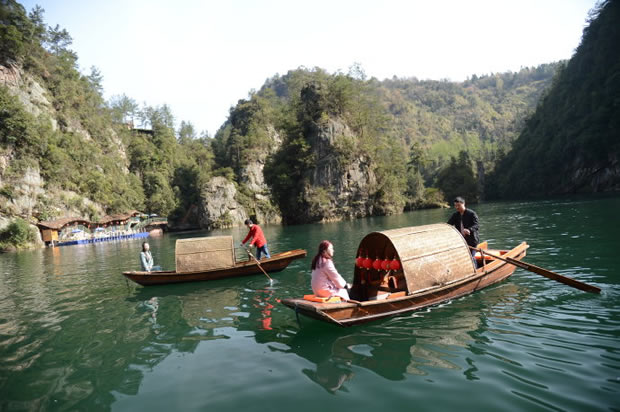 “在高峽平湖中,我們看到了張家界山水的純凈,也感受了這里人文的多彩!币慌鷣碜蕴﹪娜A裔游客當天游覽景區(qū)后開心地說。在他們眼中,寶峰湖的春天風景獨好,四周山巒山花競放,五顏六色絢麗無比,就連湖面倒影也十分迷人。而導(dǎo)游員熱情洋溢的講解和山歌船飛出的原生態(tài)民歌,以及烏篷船上身著民族服裝的阿哥阿妹,都是他們張家界之旅不容錯過的人文風景。