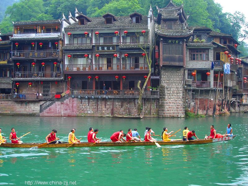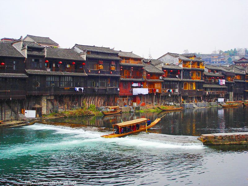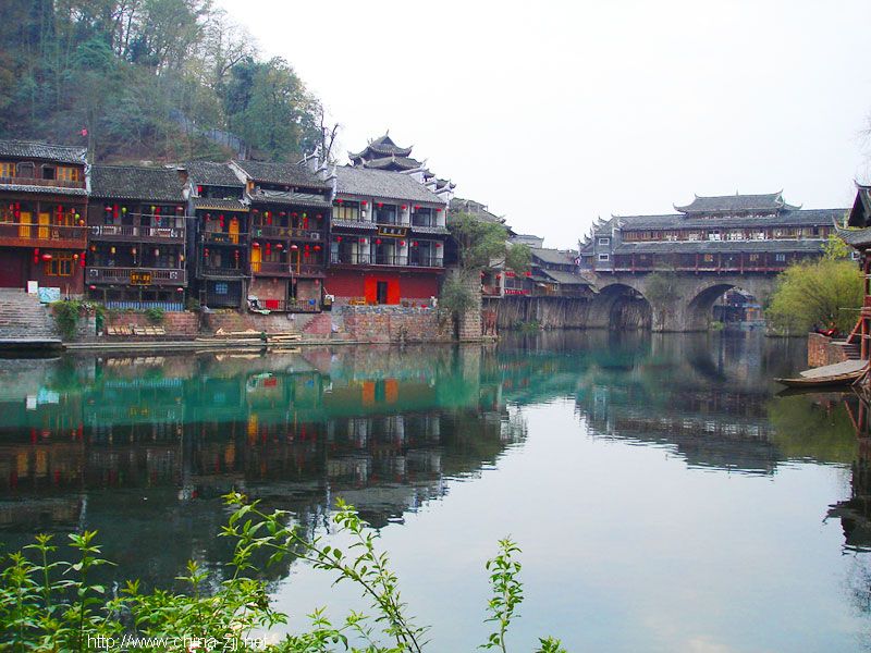 【鳳凰古城位于沱江之畔、群山環(huán)抱、關(guān)隘雄奇、碧綠的沱江依著城墻緩緩流淌,疊翠的南華山麓倒映江中,江中漁舟游船數(shù)點(diǎn),山間暮鼓晨鐘兼鳴,懸崖上的吊腳樓輕煙裊裊,碼頭邊的浣紗姑笑聲朗朗,兩岸已有數(shù)百年歷史的吊腳樓更是別有一番風(fēng)味;順?biāo)麓┻^(guò)虹橋一幅江南水鄉(xiāng)的畫面便展現(xiàn)于眼前--萬(wàn)壽宮、萬(wàn)名塔、奪翠樓……一種遠(yuǎn)離塵世的感覺悠然而生;鳳凰--猶如“一幅濃墨淺彩的中國(guó)山水畫”】(游覽時(shí)間約3小時(shí)左右)