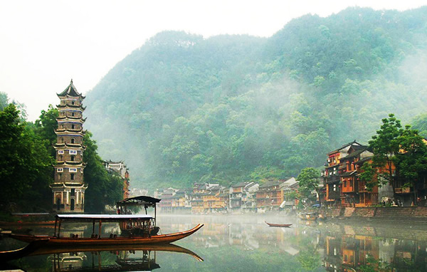 鳳凰古城是國家歷史文化名城,曾被新西蘭著名作家路易艾黎稱贊為中國最美麗的小城。這里與吉首的德夯苗寨,永順的猛洞河,貴州的梵凈山相毗鄰,是懷化、吉首、貴州銅仁三地之間的必經之路。作為一座國家歷史文化名城,鳳凰的風景將自然的、人文的特質有機融合到一處,透視后的沉重感也許正是其吸引八方游人的魅力之精髓。這座曾被新西蘭作家路易艾黎稱作中國最美麗的小城之一的“鳳凰古城”建于清康熙時,這顆“湘西明珠”是名副其實的“小”,小到城內僅有一條像樣的東西大街,可它卻是一條綠色長廊。